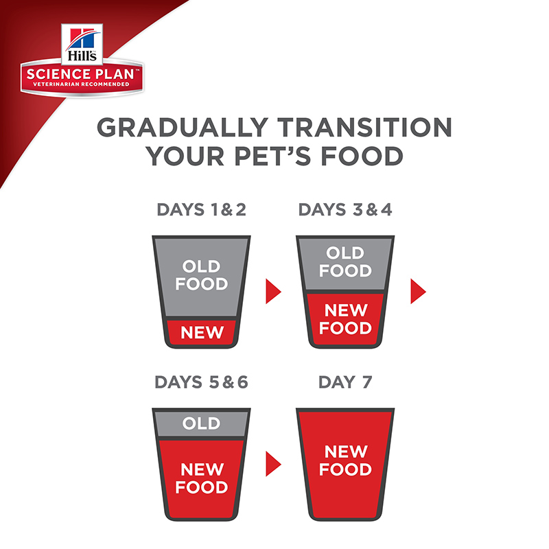 Första gången du ger detta foder? Blanda en ökande mängd av det nya fodret samtidigt som du minskar mängden av det tidigare fodret under 7 dagar.