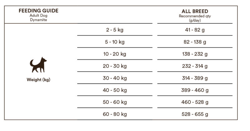 Varje hund är unik och därför kan den faktiska mängden foder variera beroende på hur gammal och hur aktiv din hund är. Utfodra två gånger dagligen och se till att hunden alltid har tillgång till friskt vatten. Förvaras torrt och svalt. Bäst före och batchnummer: se botten av påsen