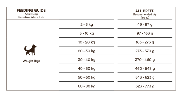 Varje hund är unik och därför kan den faktiska mängden foder variera beroende på hur gammal och hur aktiv din hund är. Utfodra två gånger dagligen och se till att hunden alltid har tillgång till friskt vatten. Förvaras torrt och svalt. Bäst före och batchnummer: se botten av påsen
