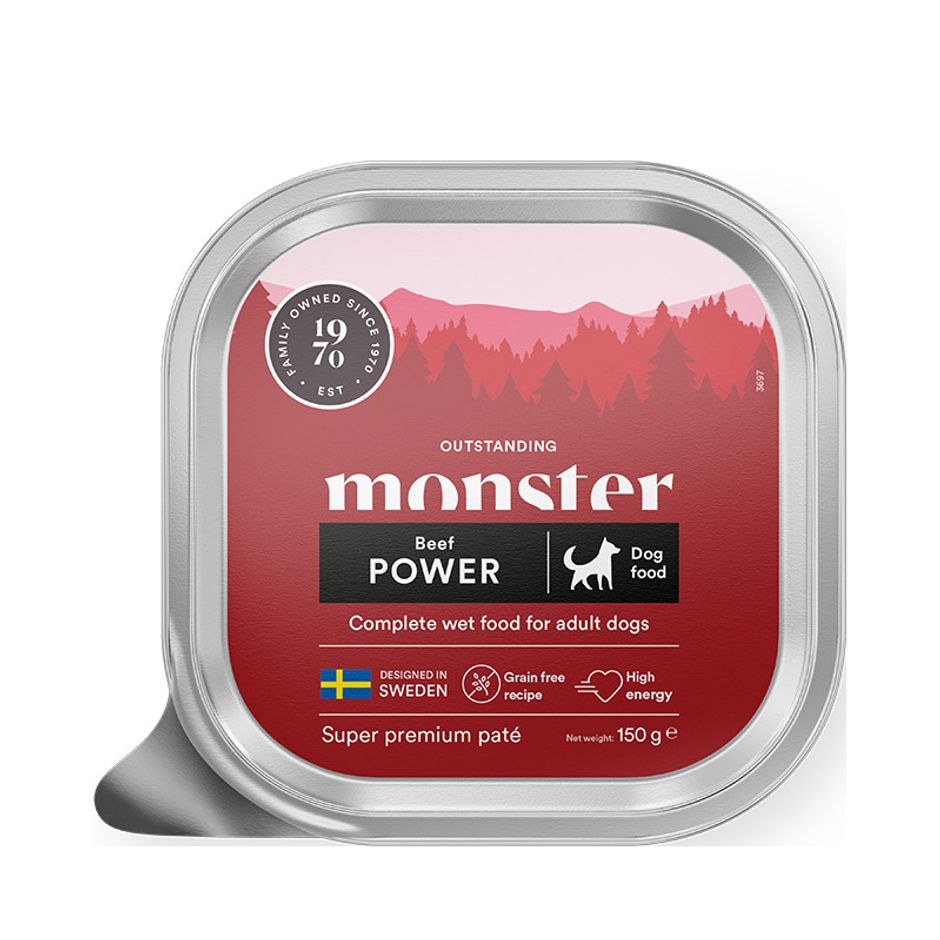 Behöver din hund mer energi för att orka prestera på topp? Testa Monsters energirika Power-paté. Förpackad i en praktisk förpackning, smidig att förvara och ta med. Att ge din hund extra Power har nog aldrig varit enklare.