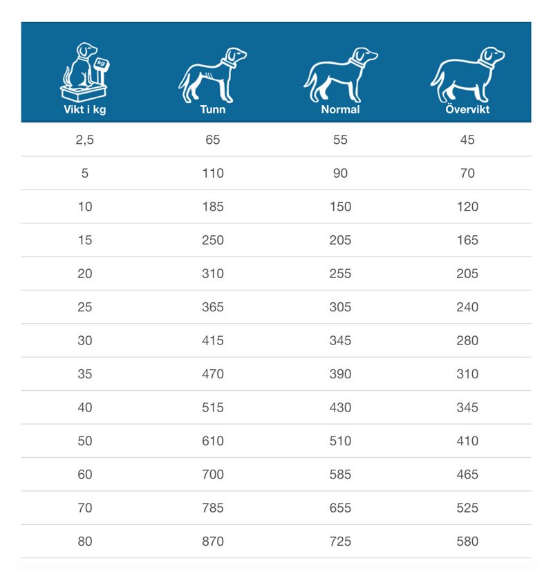 Vi rekommenderar att du övervakar ditt djur och justerar utfodringsmängden för att passa dess individuella behov.