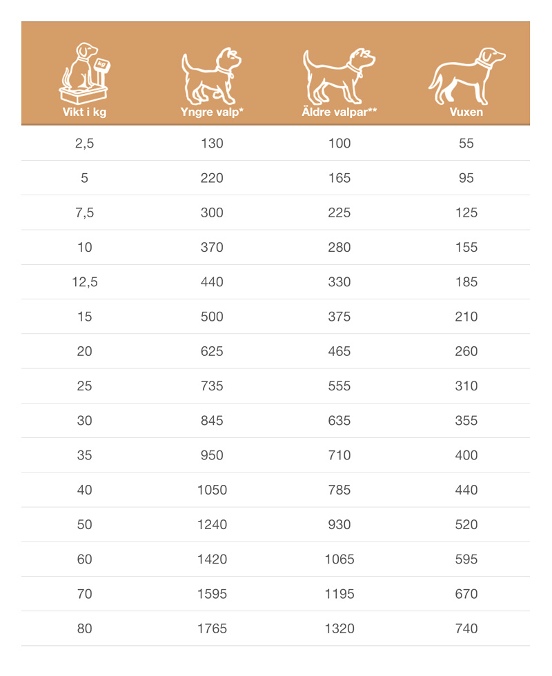 Vi rekommenderar att du kontrollerar ditt djur och justerar fodermängden så att det passar deras individuella behov.