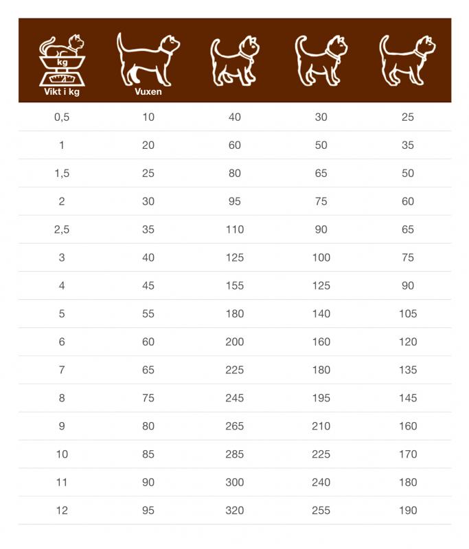 Vi rekommenderar att du kontrollerar ditt djur och justerar fodermängden så att det passar deras individuella behov.
