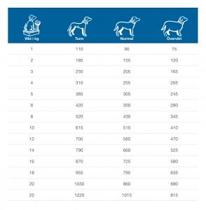 Det dagliga behovet kan variera beroende på faktorer som ras, miljö, säsong och aktivitetsnivå. Vi rekommenderar att du övervakar ditt djur och justerar utfodringsmängden för att passa dess individuella behov.